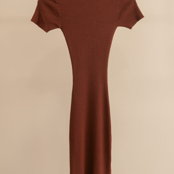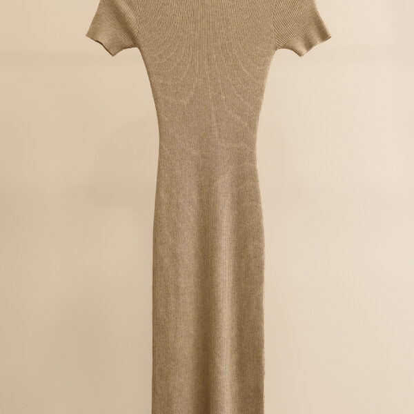Πλεκτό ριπ φόρεμα με όρθιο γιακά καί σκίσιμο