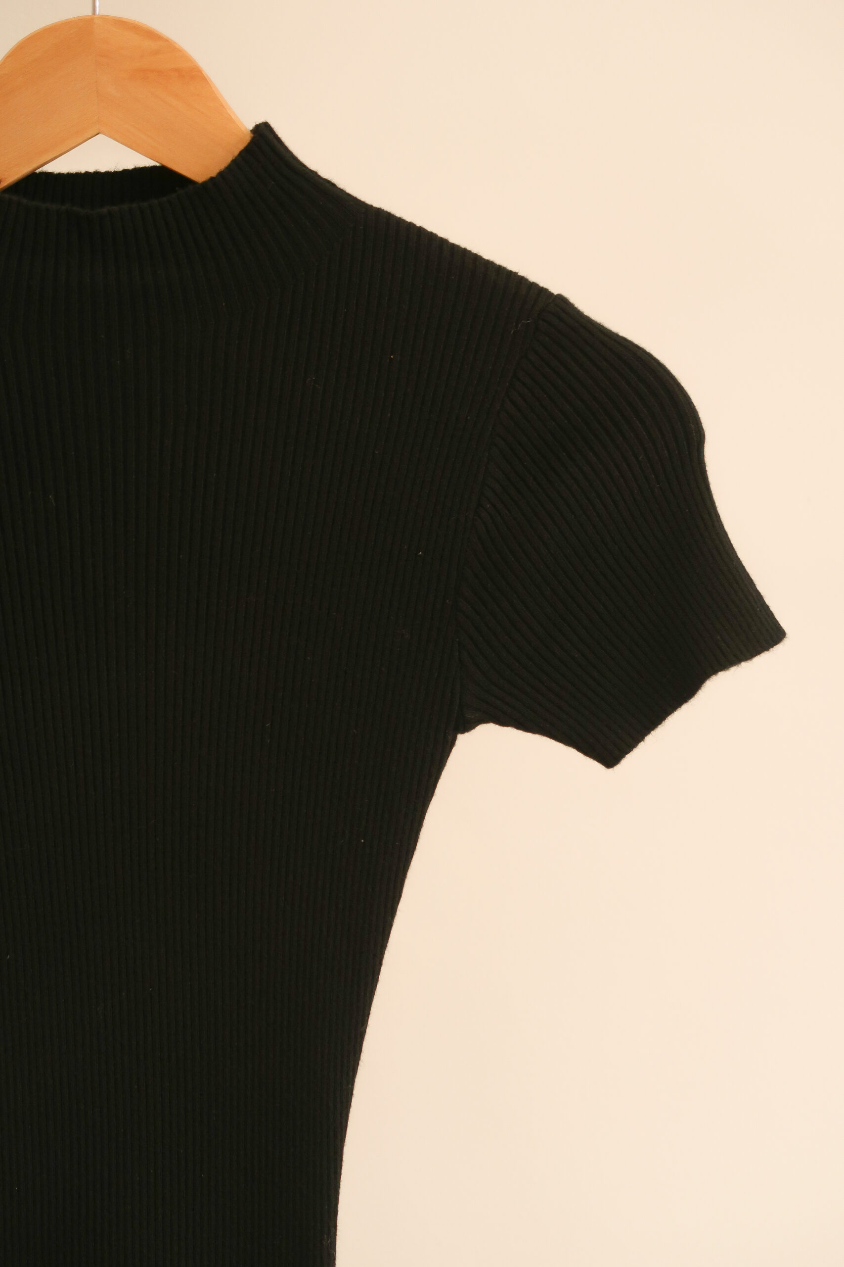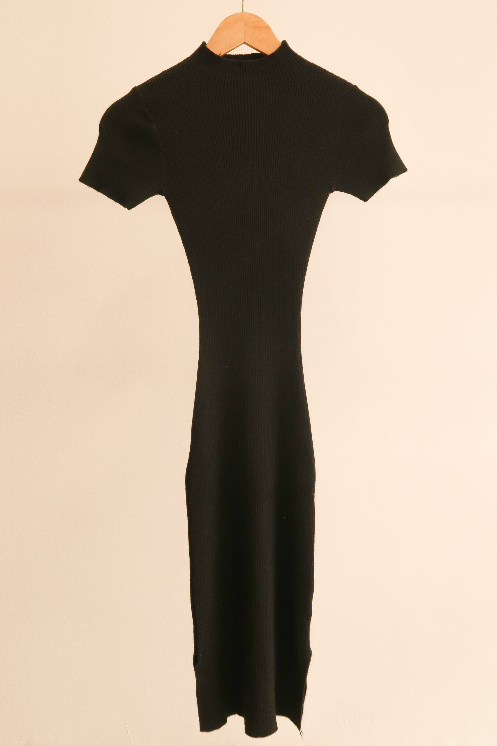 Πλεκτό ριπ φόρεμα με όρθιο γιακά καί σκίσιμο